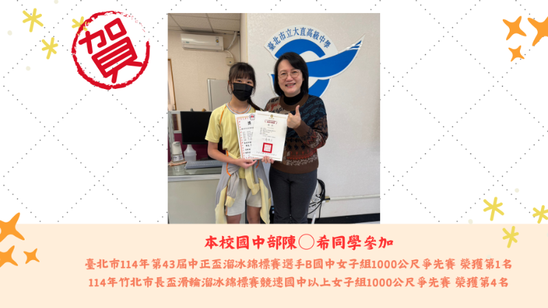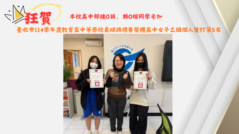 | 2025-12-31 | 公告大直高中114學年校內科學展覽會獲獎名單,恭喜獲獎同學! |