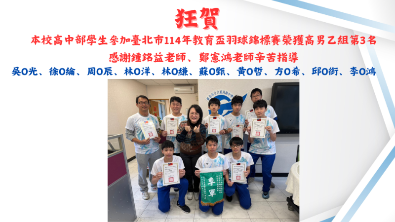 | 2025-12-24 | 置頂114學年度國中部英語文競賽得獎名單公告 |