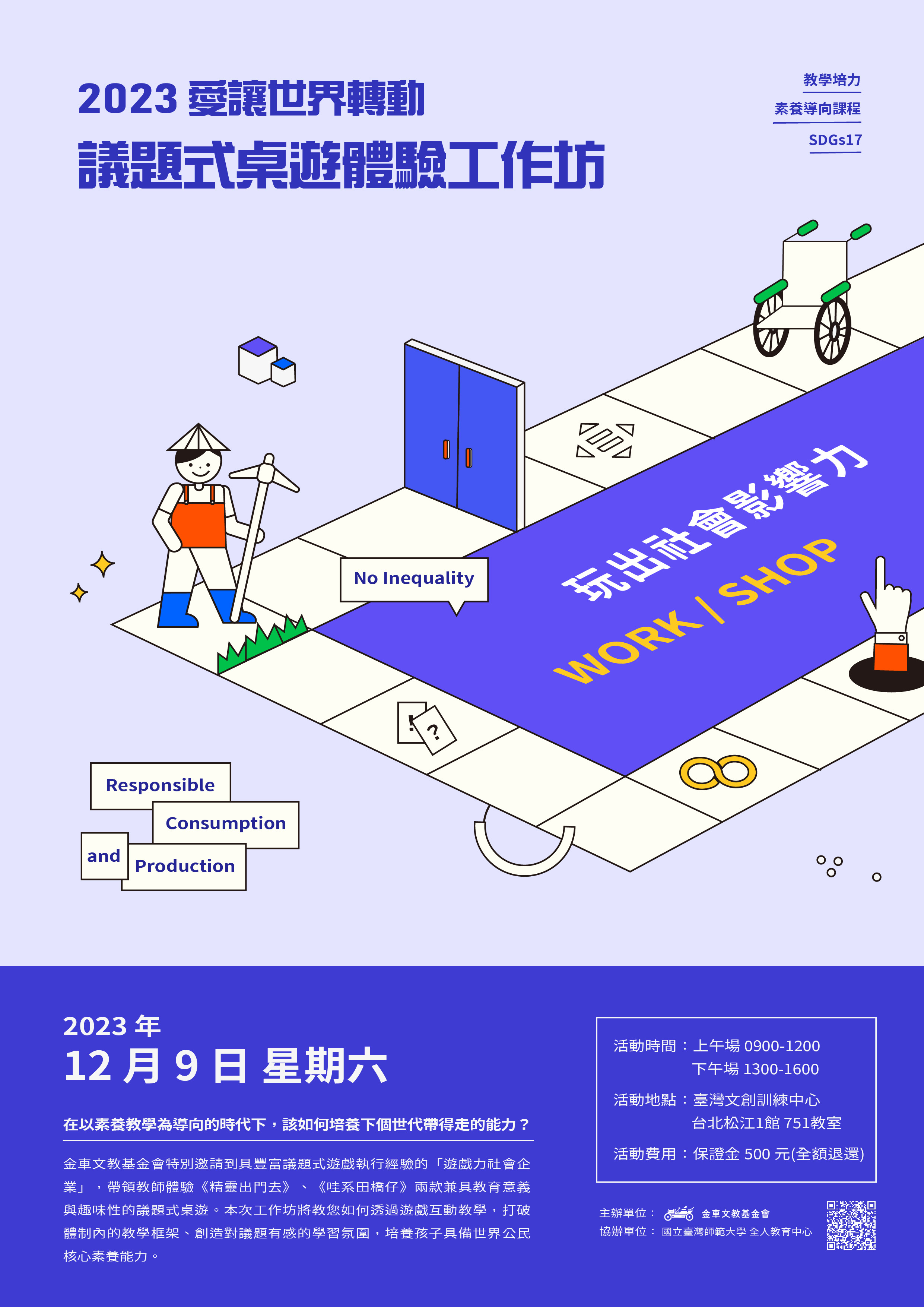 | 公告主旨 | 「2023愛讓世界轉動—《玩出社 會影響力》議題式桌遊體驗工作坊 |