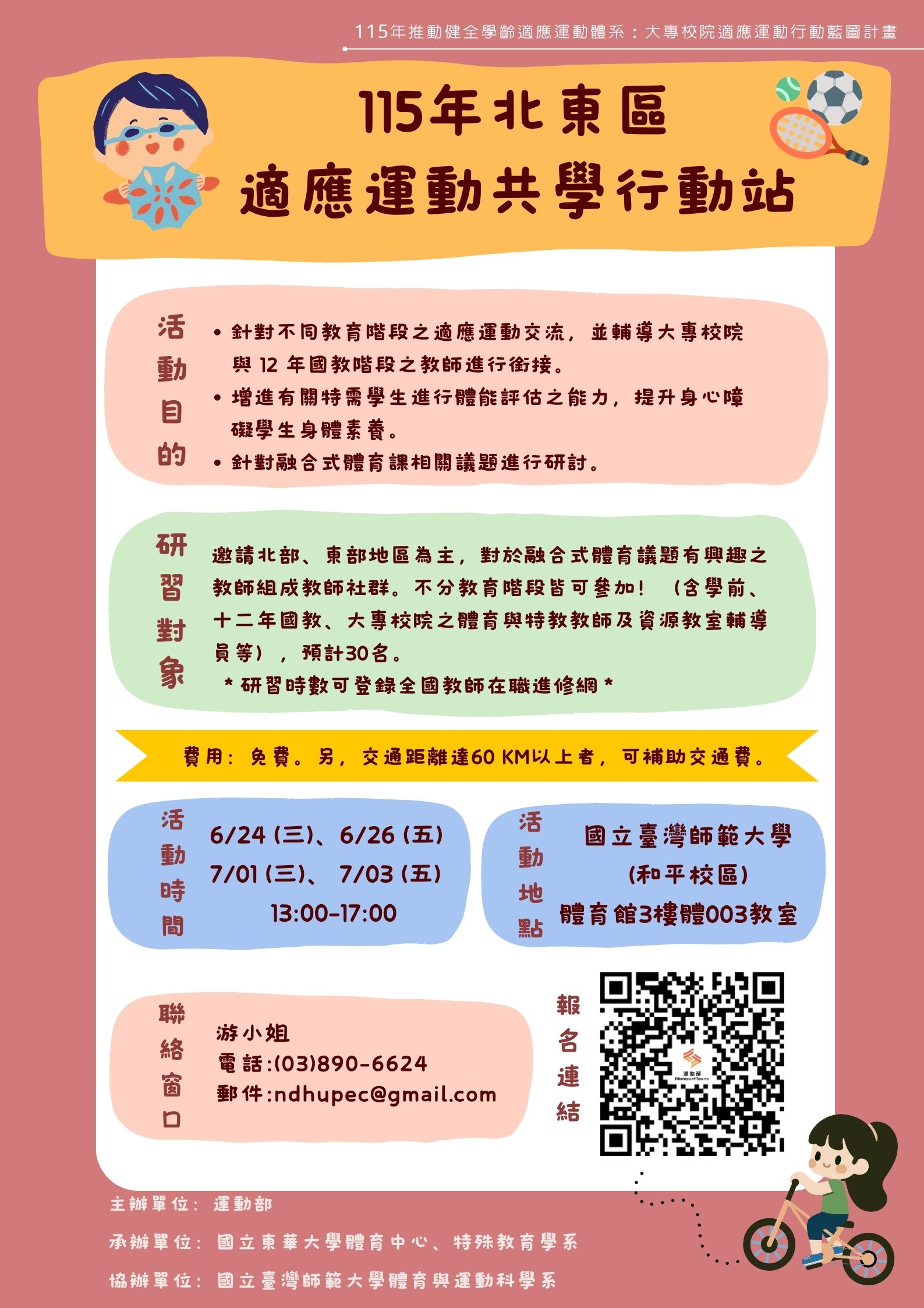 | 公告主旨 | 大專校院北東區適應運動共學行動藍圖計畫 |