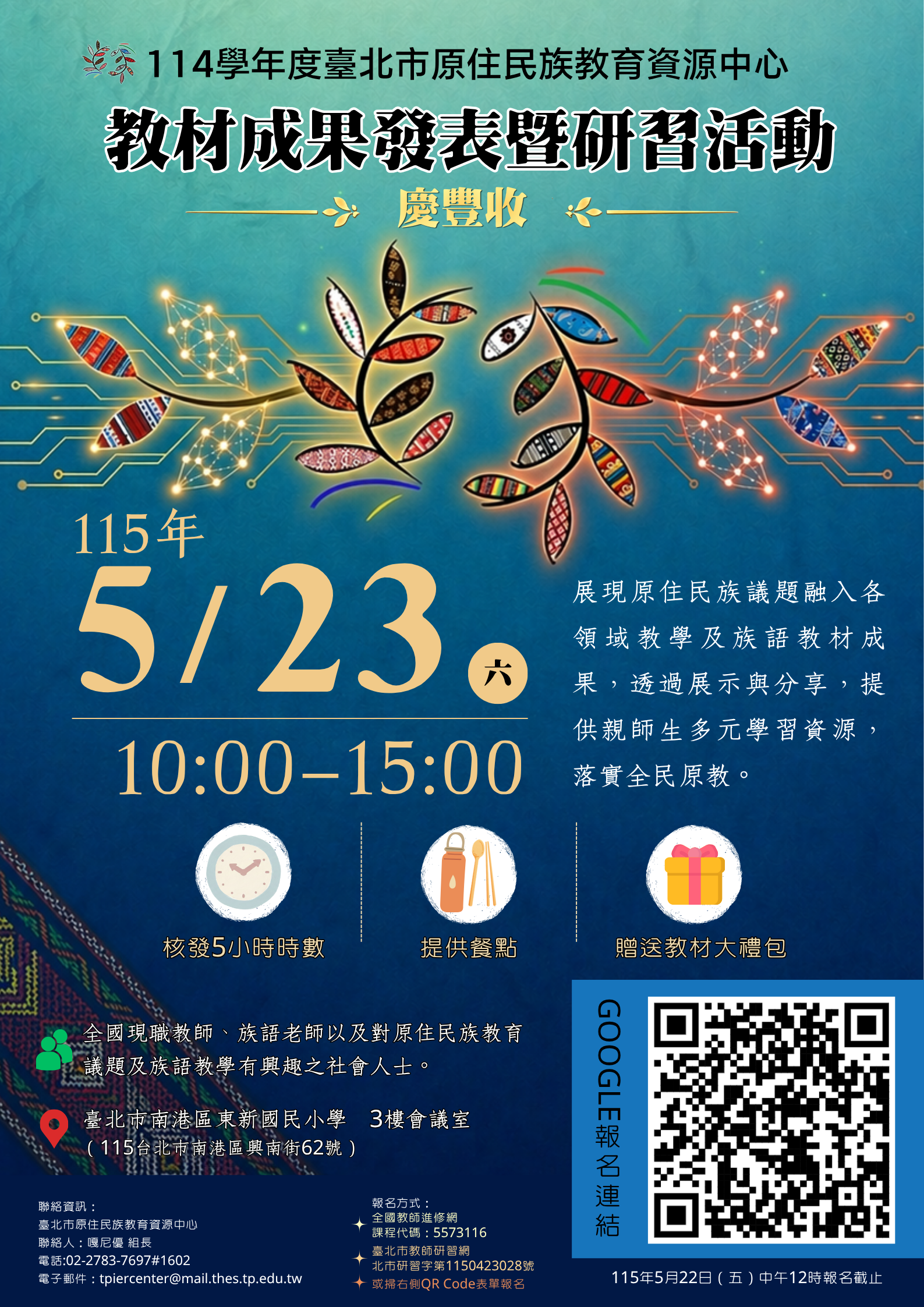本活動訂於115年5月23日(星期六)上午10時至下午15 (一)全國教師在職進修資訊網報名(課程代碼: |