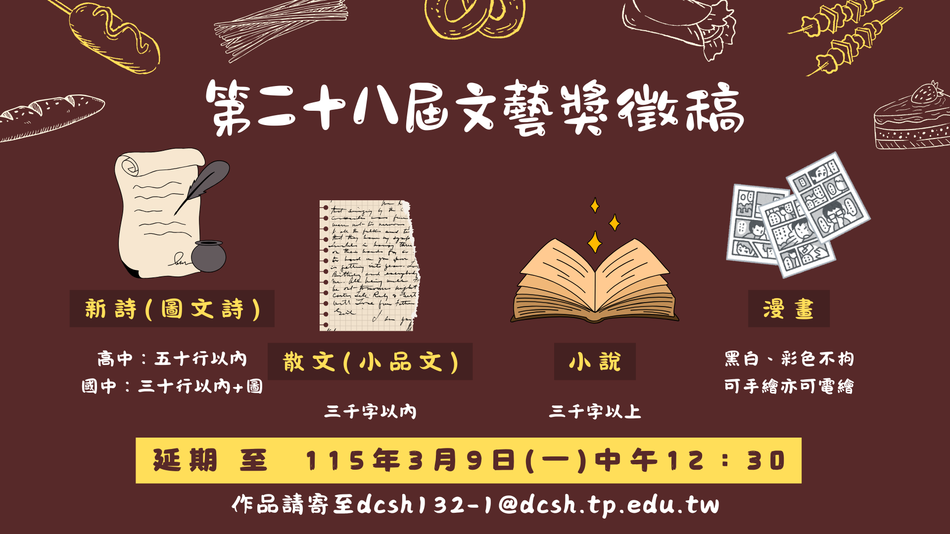 🎉 臺北市立大直高中 第28屆文藝獎徵稿延期 🌟